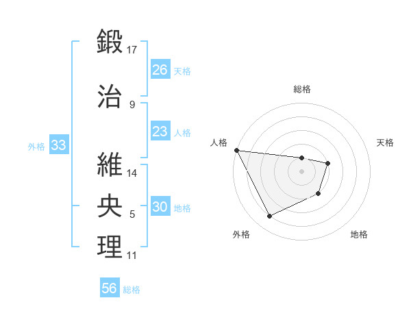 鍛治 維央理さんを姓名の画数から五運を鑑定