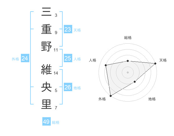 三重野 維央里さんを姓名の画数から五運を鑑定
