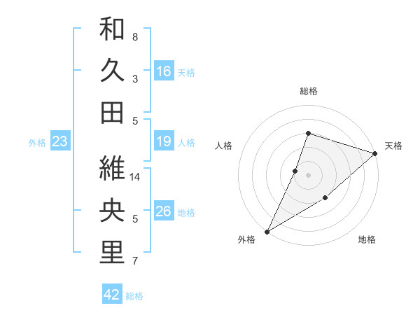 和久田 維央里さんを姓名の画数から五運を鑑定