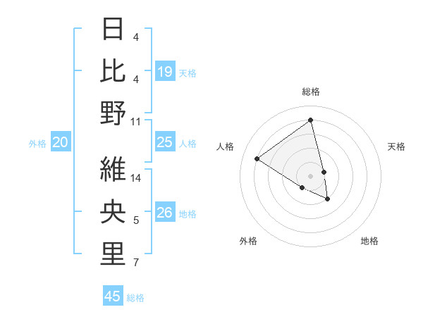 日比野 維央里さんを姓名の画数から五運を鑑定