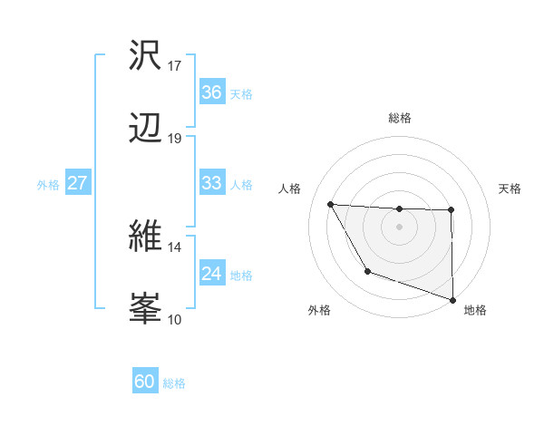 沢辺 維峯さんの総格は60画の1点!
