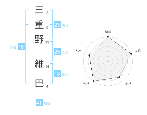 三重野 維巴さんを姓名の画数から五運を鑑定