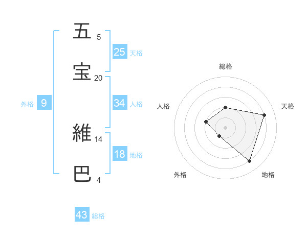 五宝 維巴さんを姓名の画数から五運を鑑定