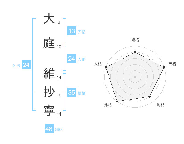 大庭 維抄寧さんを姓名の画数から五運を鑑定