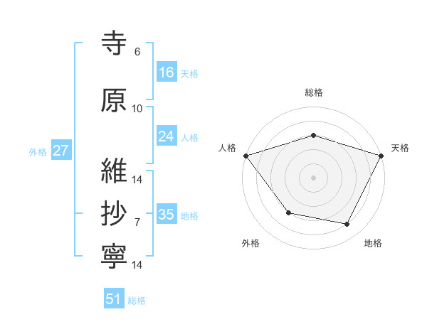 寺原 維抄寧さんを姓名の画数から五運を鑑定
