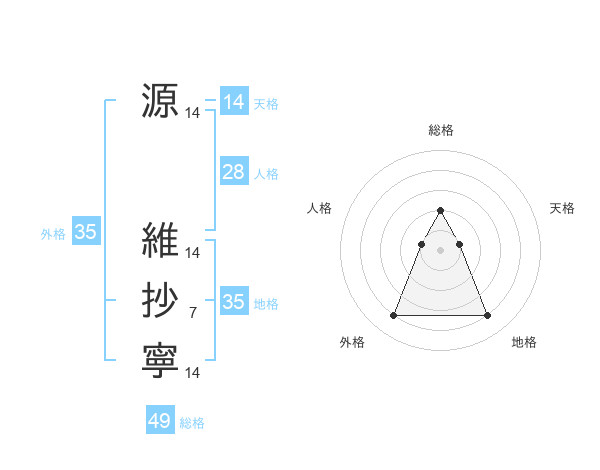 源 維抄寧さんの総格は49画の2点!