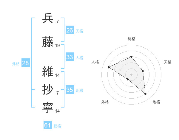 兵藤 維抄寧さんを姓名の画数から五運を鑑定