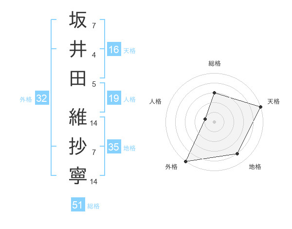 坂井田 維抄寧さんの総格は51画の3点!