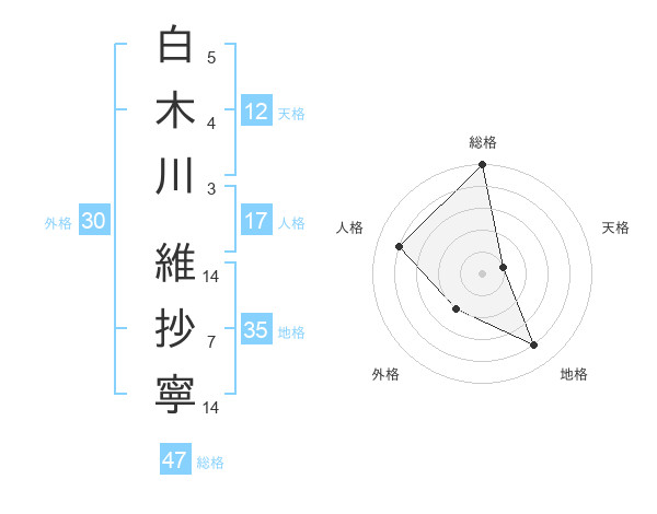 白木川 維抄寧さんの総格は47画の5点!