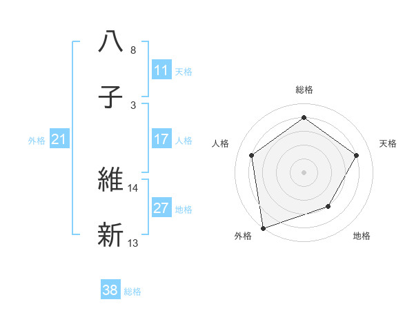八子 維新さんの総格は38画の4点!
