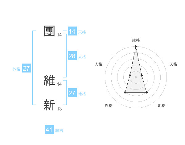 團 維新さんの天格は14画の1点!