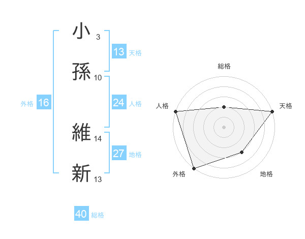 小孫 維新さんの外格は16画の5点!