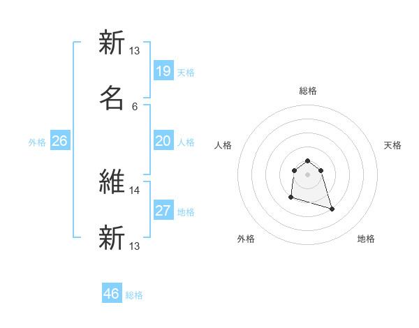 新名 維新さんの総格は46画の1点!