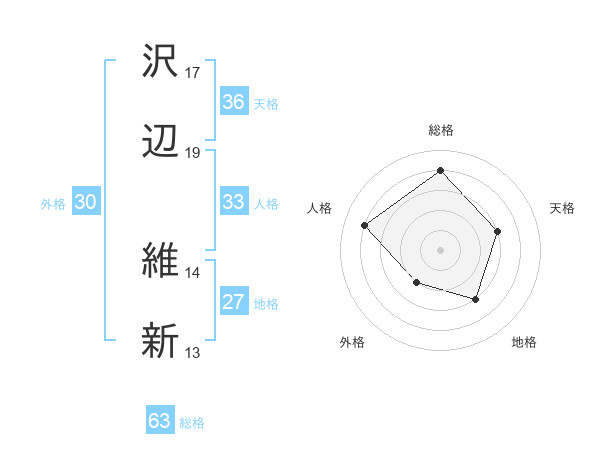 沢辺 維新さんの総格は63画の4点!