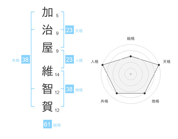 加治屋 維智賀さんを姓名の画数から五運を鑑定