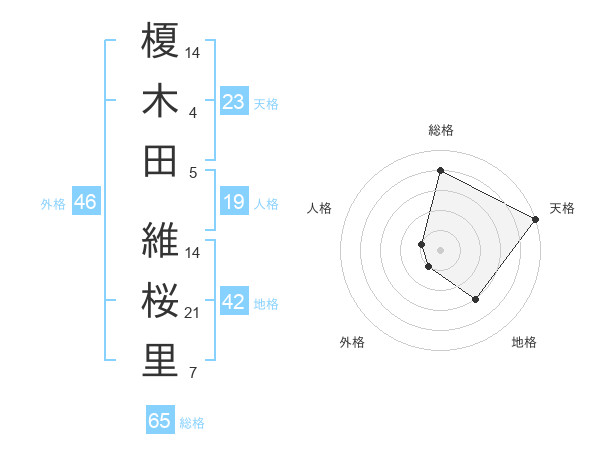 榎木田 維桜里さんの総格は65画の4点!