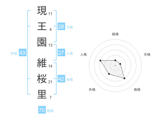 現王園 維桜里さんを姓名の画数から五運を鑑定
