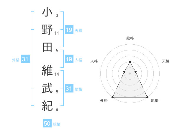 小野田 維武紀さんの総格は50画の2点!
