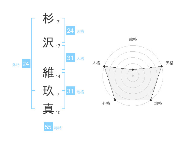 杉沢 維玖真さんを姓名の画数から五運を鑑定