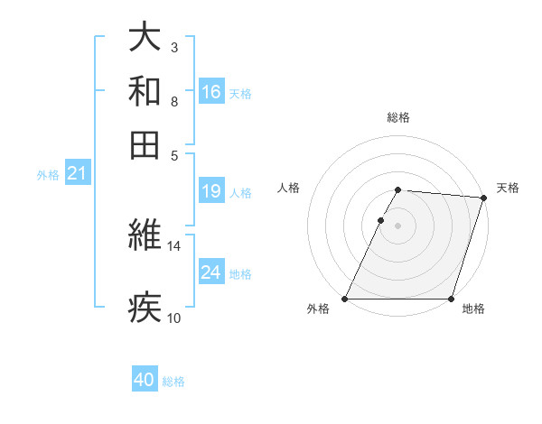 大和田 維疾さんの外格は21画の5点!
