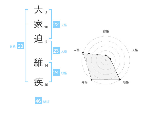 大家迫 維疾さんを姓名の画数から五運を鑑定