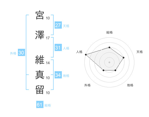 宮澤 維真留さんを姓名の画数から五運を鑑定