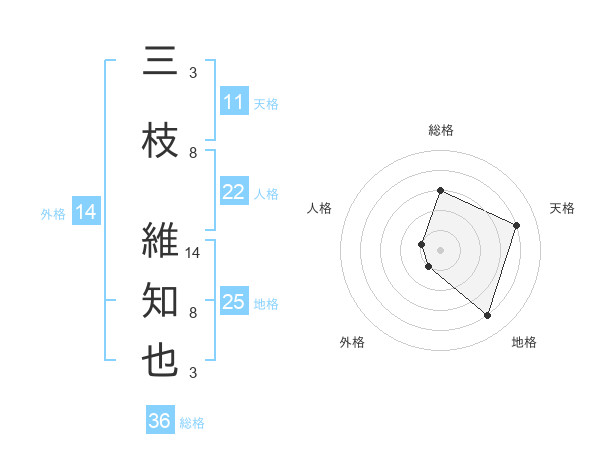 三枝 維知也さんの天格は11画の4点!