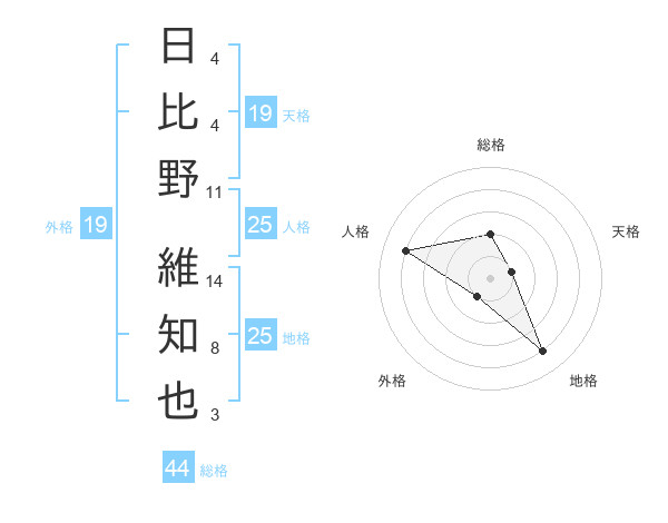 日比野 維知也さんを姓名の画数から五運を鑑定