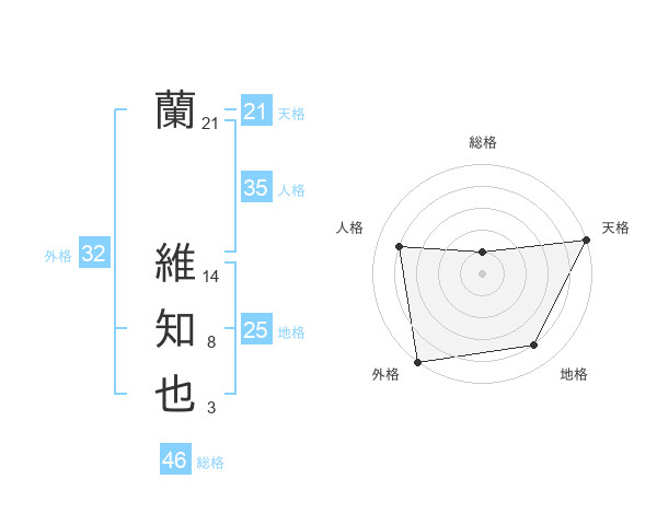蘭 維知也さんを姓名の画数から五運を鑑定