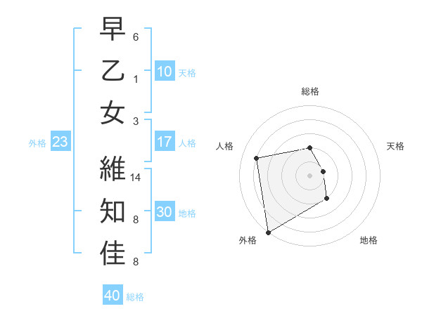 早乙女 維知佳さんの外格は23画の5点!