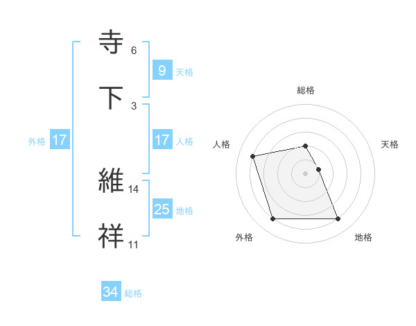 寺下 維祥さんの総格は34画の2点!