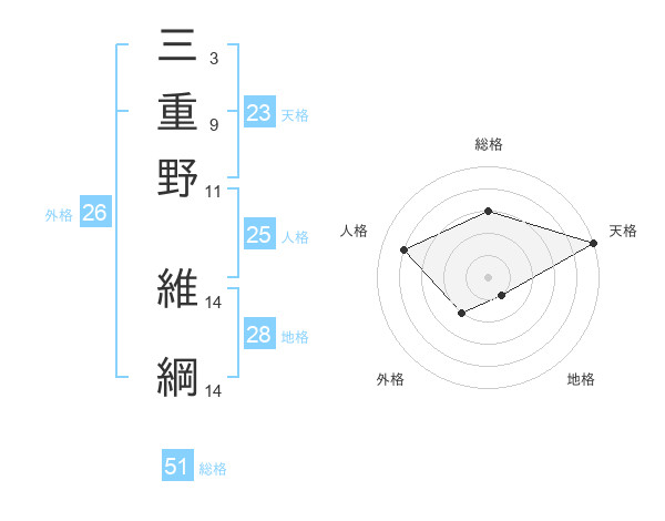 三重野 維綱さんの総格は51画の3点!