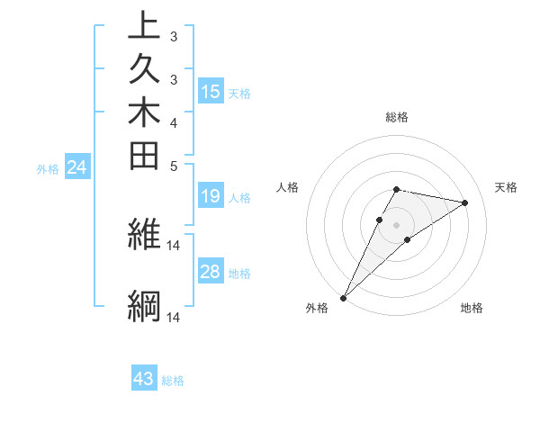 上久木田 維綱さんの総格は43画の2点!