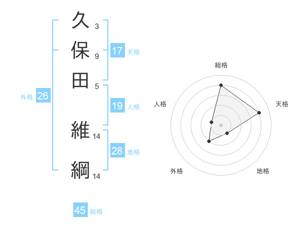 久保田 維綱さんの総格は45画の4点