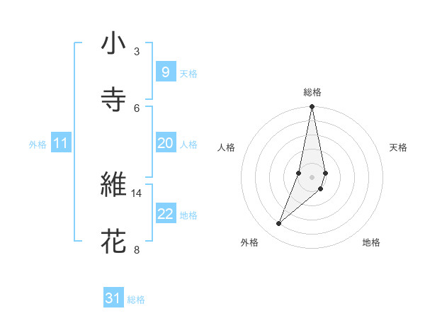 小寺 維花さんの総格は31画の5点!