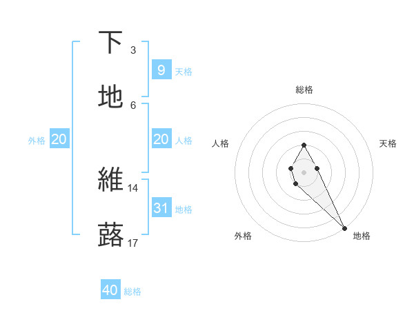 下地 維蕗さんを姓名の画数から五運を鑑定