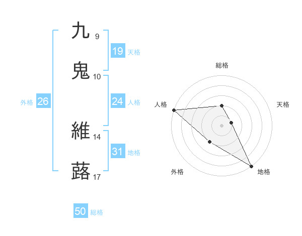 九鬼 維蕗さんの総格は50画の2点!