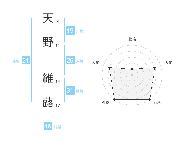 天野 維蕗さんの天格は15画の4点!
