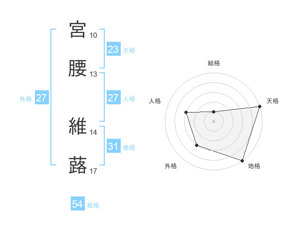 宮腰 維蕗さんを姓名の画数から五運を鑑定