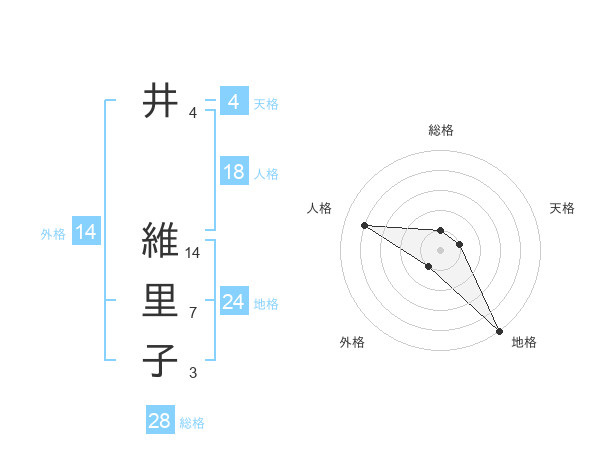 井 維里子さんの総格は28画の1点!