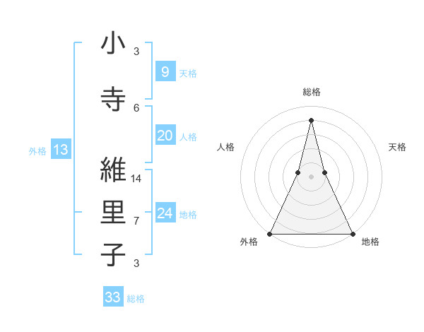 小寺 維里子さんを姓名の画数から五運を鑑定