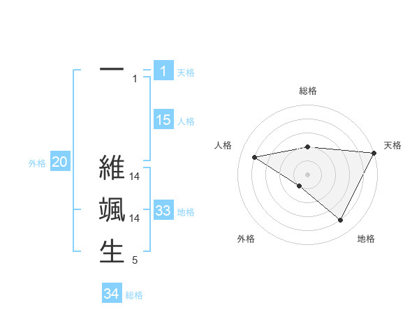 一 維颯生さんの外格は20画の1点!