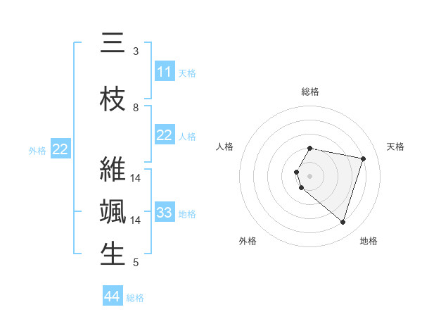 三枝 維颯生さんを姓名の画数から五運を鑑定