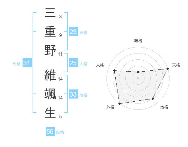 三重野 維颯生さんを姓名の画数から五運を鑑定