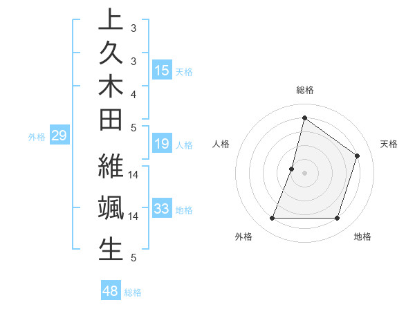上久木田 維颯生さんの天格は15画の4点!