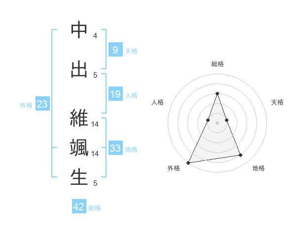 中出 維颯生さんの外格は23画の5点!