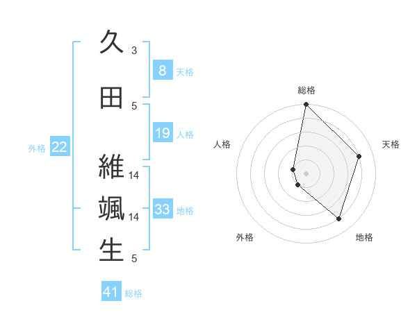 久田 維颯生さんを姓名の画数から五運を鑑定