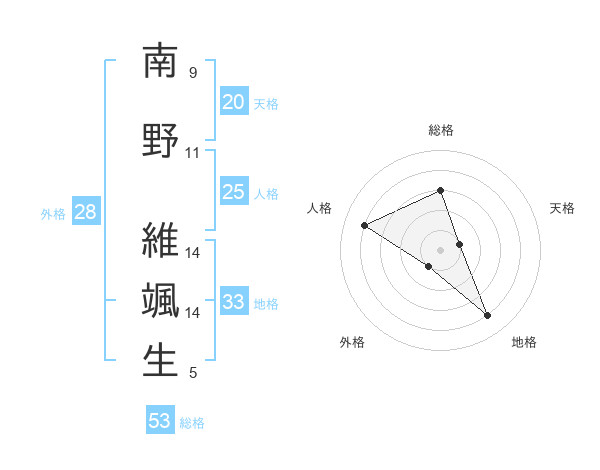 南野 維颯生さんの人格は25画の4点!