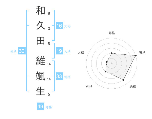 和久田 維颯生さんを姓名の画数から五運を鑑定