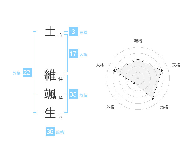 土 維颯生さんを姓名の画数から五運を鑑定